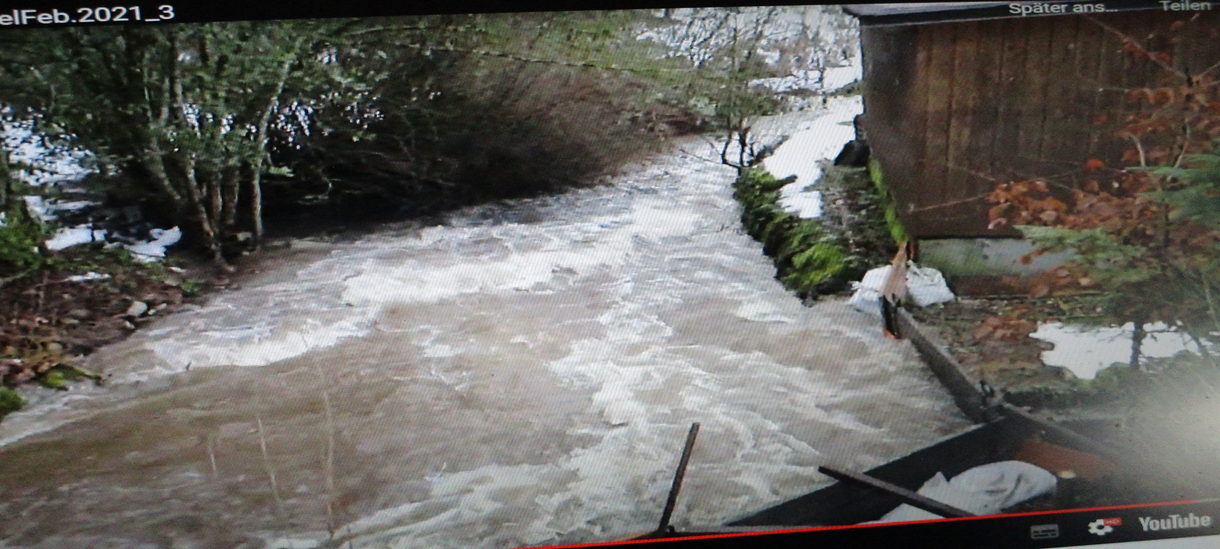 Sie finden die entsprechenden Videofilme und Fotos von den Findlingen im Bachbett und den daraus resultierenden Überschwemmungen im Anschluss.
